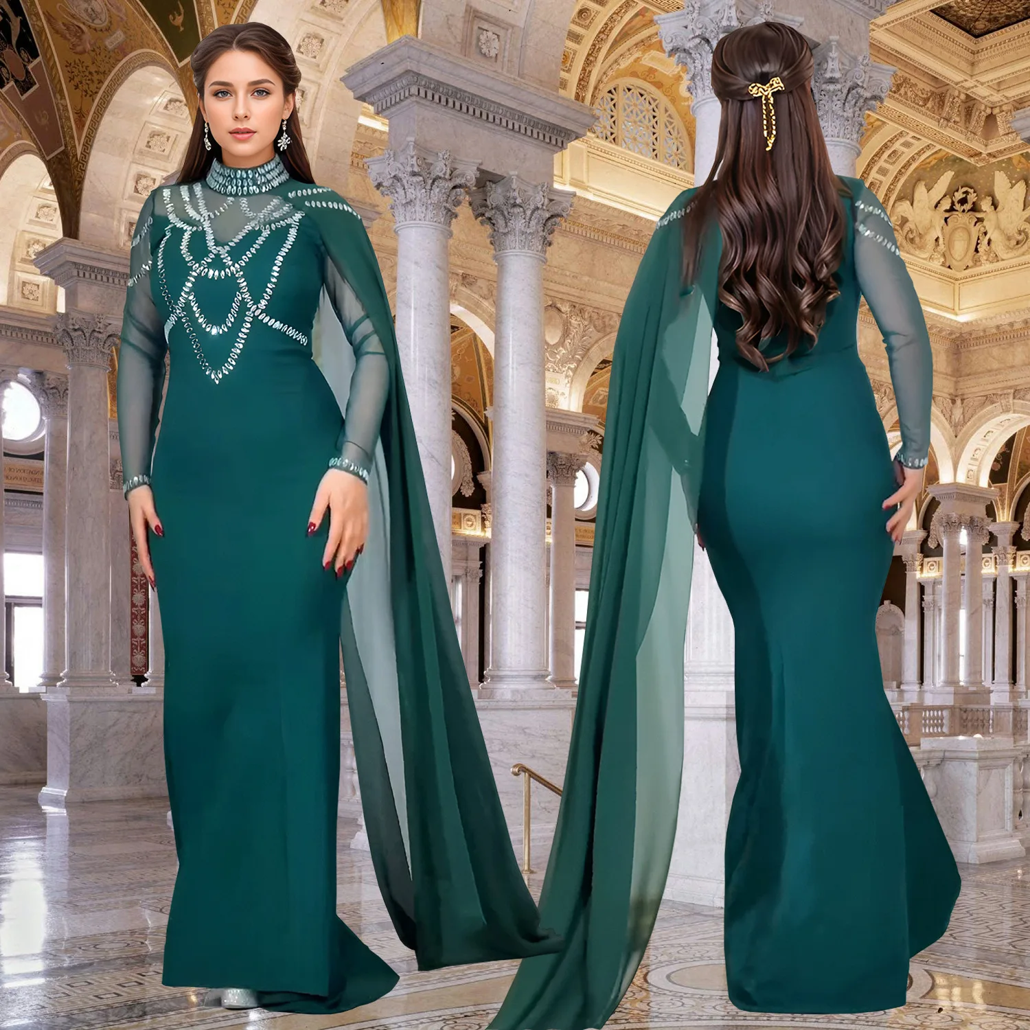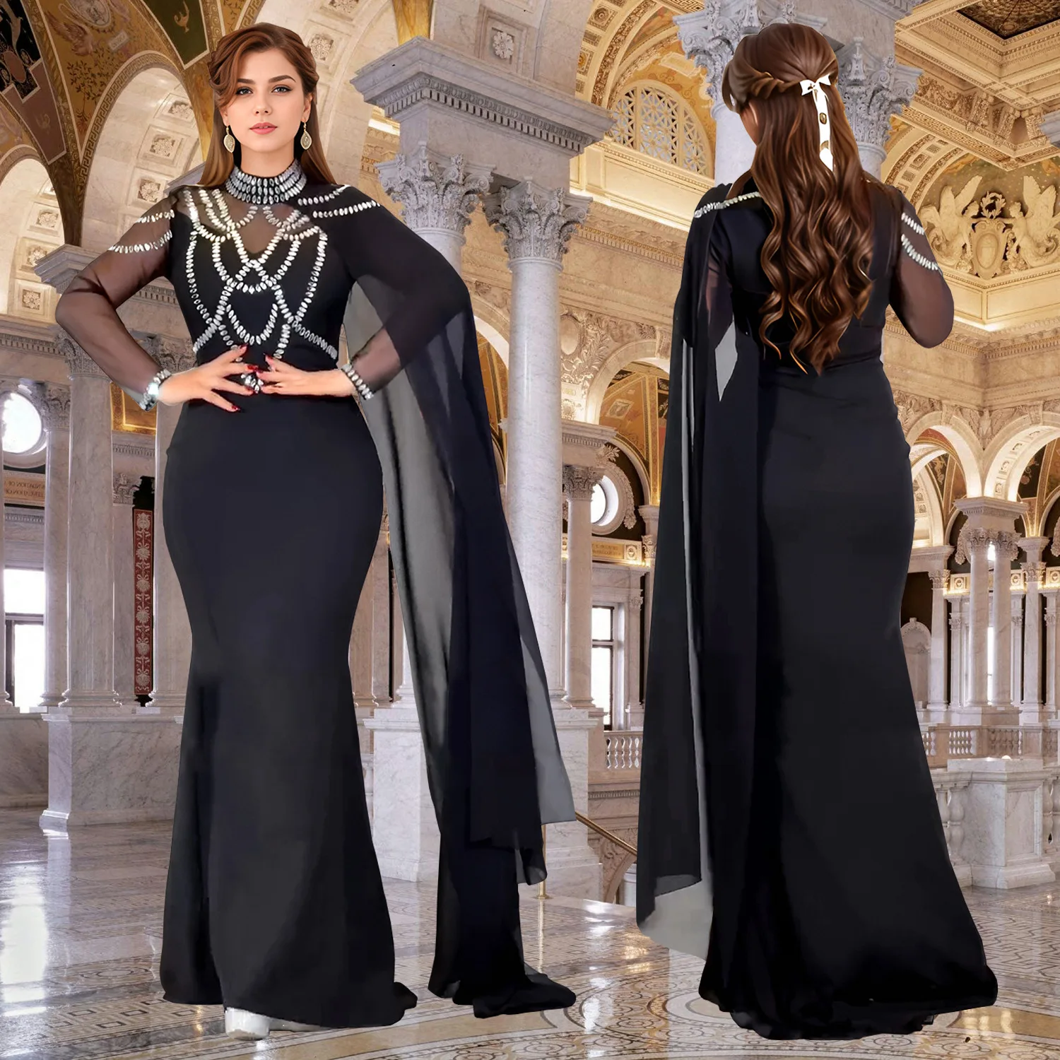 Women's Elegant Muslim Women Dress Chiffon Split Muslim Women's Robe Dresses for Party